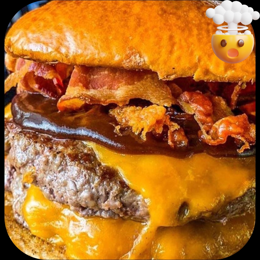 Pão brioche tostado na manteiga, molho cheddar cremoso, 2 suculentos e deliciosos blends de 100g, assados na brasa, queijo cheddar e bacon.